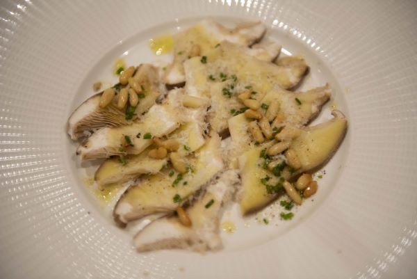 Carpaccio de Boletus.Rebollones al ajillo.
